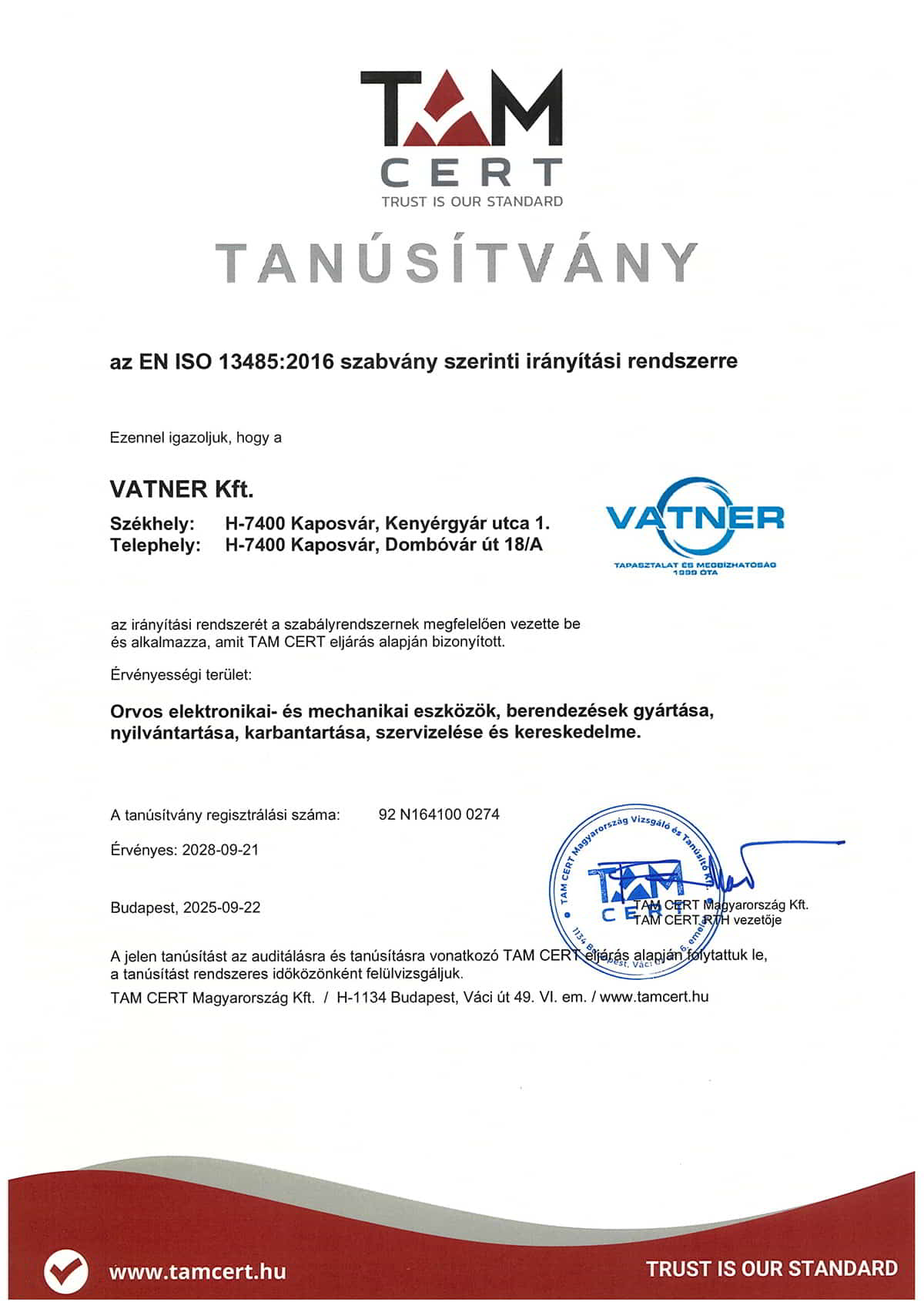 A 100%-ban magyar tulajdonú VATNER Kft. 1999-ben alakult, és azóta is a lelkiismeretesség, a kitartás, valamint az üzleti partnereinkkel való szoros együttműködés határozza meg működésünket.